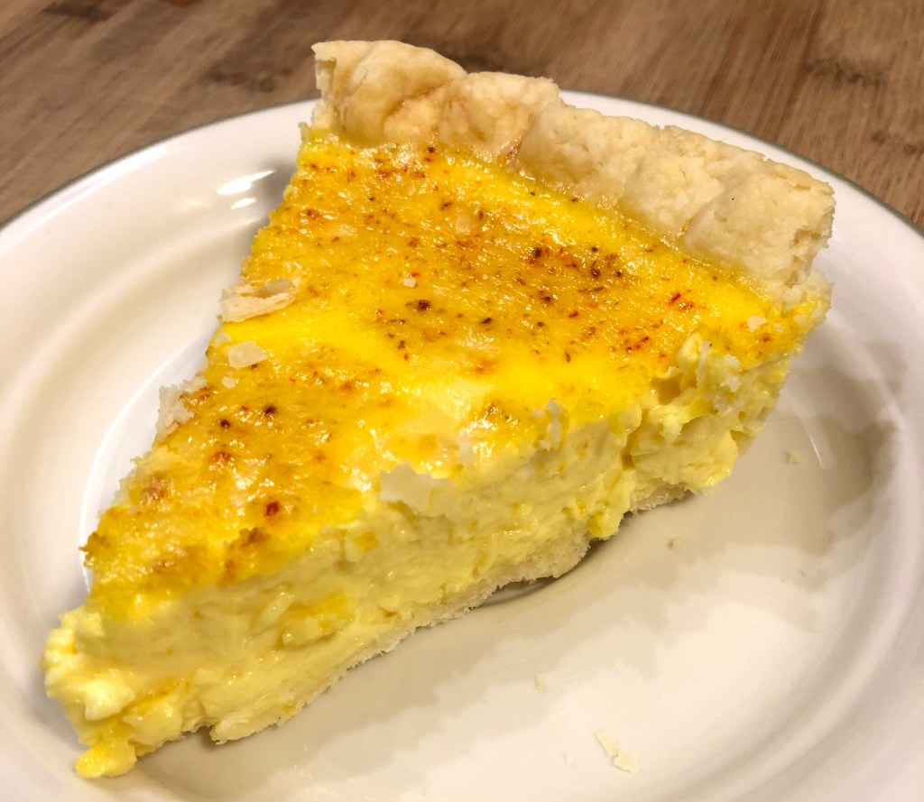 Lay the crust in a metal pie tin. Crimp the edge, prick the bottom with a fork, and blind bake the crust ~15 minutes at 375ºF until lightly golden. Remove and reduce the oven to 350ºF.